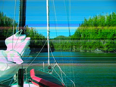 Klaskish Basin, buried in Brooks Bay, is a magical, sheltered oasis, hemmed in by forest and field, populated by the sound of babbling brooks, with deep green cloudy waters beneath, almost phosphorescent in the sunlight. We spent a peaceful night there, finding plenty of space with only three other boats anchored there for the evening. I don't know what's up with the streaky photos I took of the narrow, winding inlet but trust me, it was unstreaked in person. See how green that water is? I'm not making that up and it's not a camera malfunction. It seemed like it glowed as we slid through it at 2 knots.